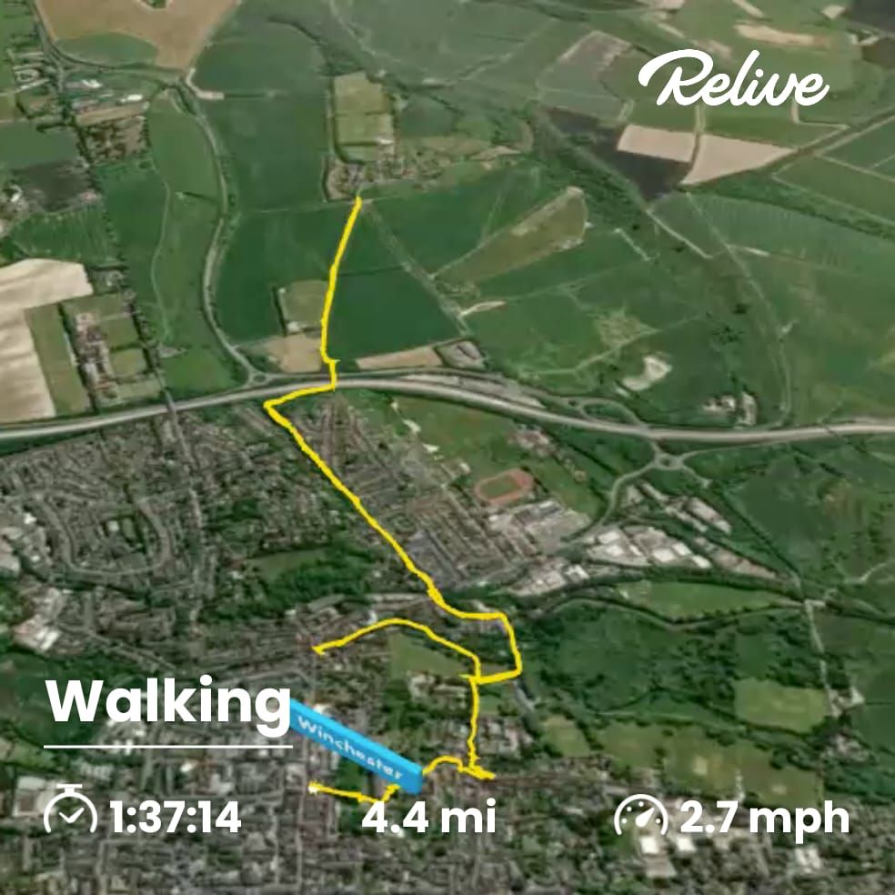 4.5 mile walk from the start of the South Downs Way out of Winchester City, over the M3 and into the countryside