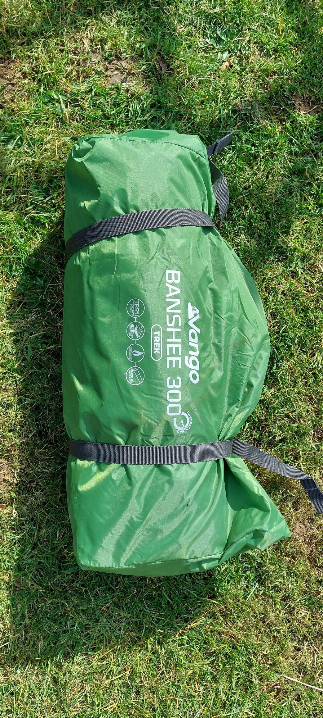 After quite a lot of research I went for the Vango Banshee 300 tent. Its relatively lightweight, weighing in at 2.8kg, slightly more than the Banshee 200 which is 2.4kg but worth it for the extra room. It has a tension band system to help give stability to the tent, and multiple points for pegging down. The inner groundsheet is waterproof, durable, reliable and easy to clean and all folds down nicely into tent bag which has a Packsize of 48 x 19cm, which should be small enough to fit inside a rucksack.