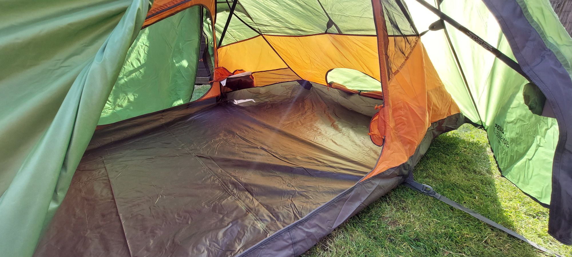 The Inside of the tent is quite spacious, glad I went for the Banshee 300 (3 person) rather than the Banshee 200 (2 person). The 3 person tent is a little wider and longer, meaning its a bit more spacious and hopefully a little more comfortable! The inner layer has doors either side which are unzipped and can be tucked away into some small pockets to the side, meaning they don’t get in the way. One side of the tent has a small triangular area between the inner and outer layers which can be used for storage and the door has an eyelet which can be used with a walking pole to create a small porch.