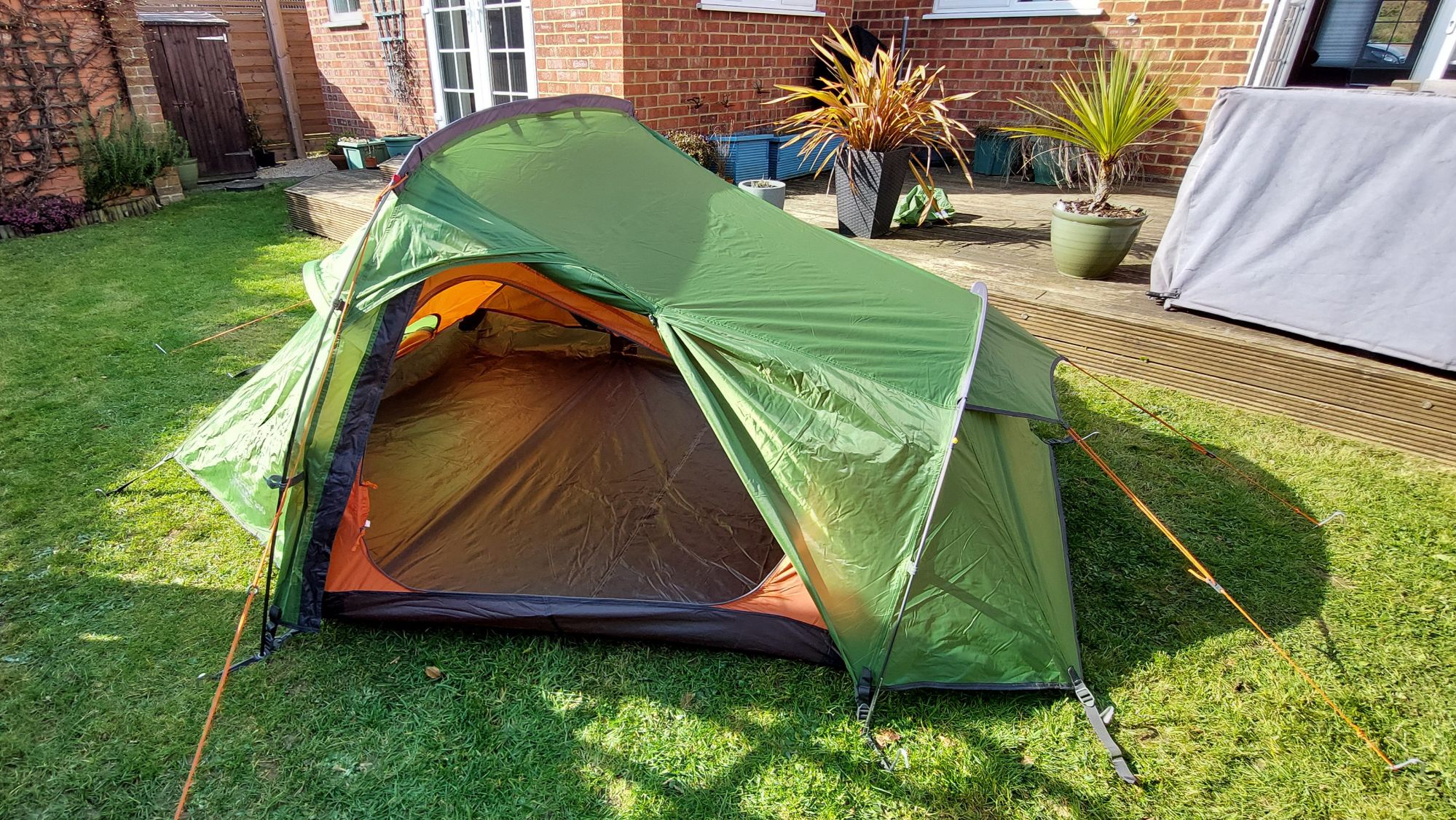 Here’s the tent all setup, with the inner layer also attached. First time you pitch, the inner layer has to be pitched separately and then connected inside, there are a number of clips and hooks inside to connect the inner layer onto the outer layer. This only needs to be done the once, subsequently the tent can be folded up and pitched with both layers attached together.