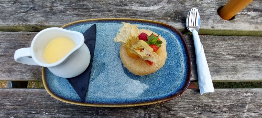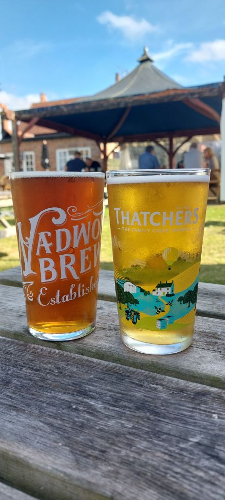 After arriving at Winchester we had a 1 mile walk through town to the Premier Inn. Checked in and then headed off to a pub we had found which looked good, the Golden Lion. And what a find, the food was fantastic! Flat iron steak and vine tomatoes, and pan fried lambs liver with crispy bacon, mash, veg and onion gravy. Delicious!! Not that we needed it but we treated ourselves to puddings as well. Lemon sponge cake and custard, and a treacle tart and custard. This hike could turn into a food review session!