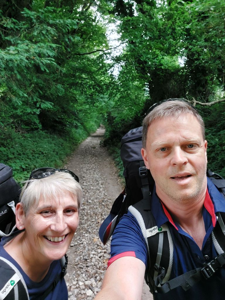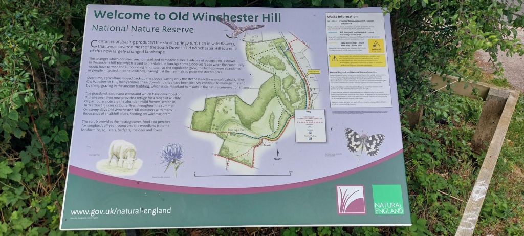 We left early in dull cloud, but still very humid. Hills came thick and fast, Old Winchester Hill first was very long and steep, finishing with a long narrow steep path, very uneven hard ground with lots of boulders.