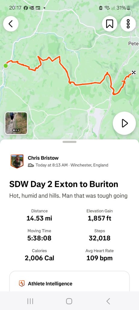 Day 2 of the South Downs Way. A day of heat, humidity and hills, and plenty of them all!