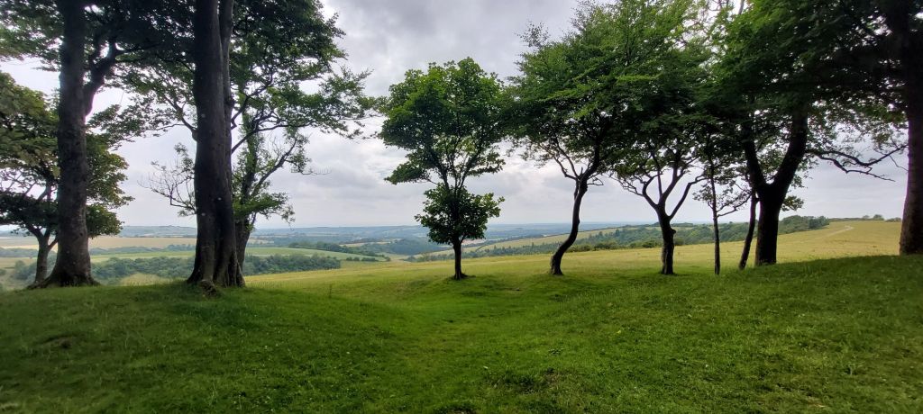 Lots and lots of hard paths later we went past Chanctonbury Ring, its either bronze or iron age, a ring of trees with a ditch surrounding, very eery. At 9 miles and the clouds cleared, and the sun broke through. But nowhere near as hot as yesterday, thankfully.
