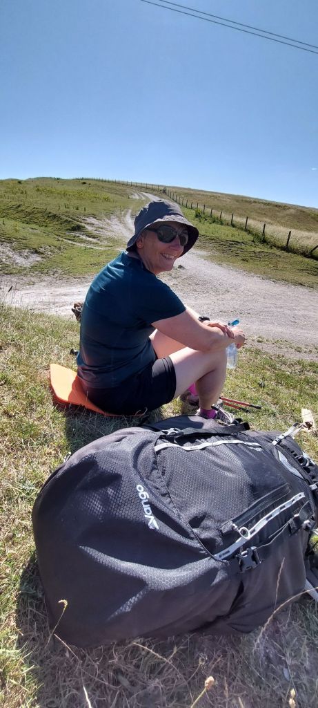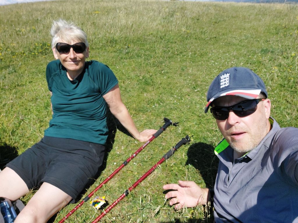 Water stop after a couple of miles, and our other crazy friends are doing the same walk this week, who we’ve seen every day came past, and we stopped for a chat.