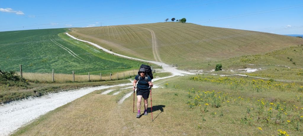 More hills and hard paths and a few miles later we made it to Pyecombe. On the map M &S in a petrol station was close, but in reality almost a mile there and back for sandwiches and supplies which were devoured in the cool shade of the church. What’s another mile, eh? 🤪