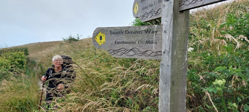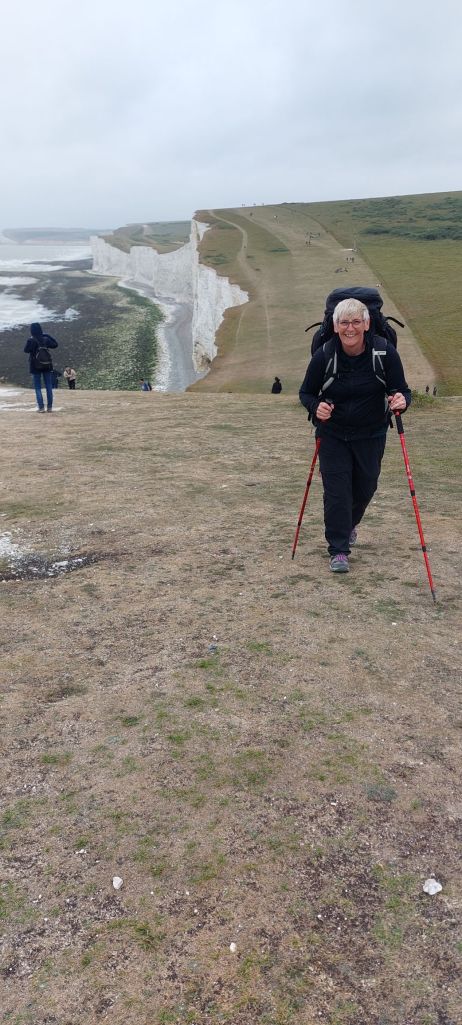 And then we were on the coast and walking over the Seven (seemed like Seventeen!) Sisters, and boy was it windy, like blowing a gale, at least it was behind us.