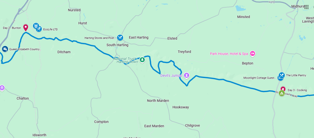 - We take a slight off route diversion to South Harting to stock up on supplies